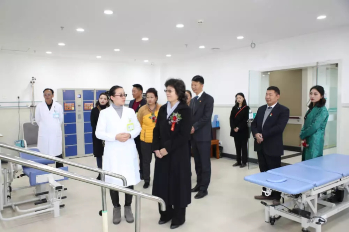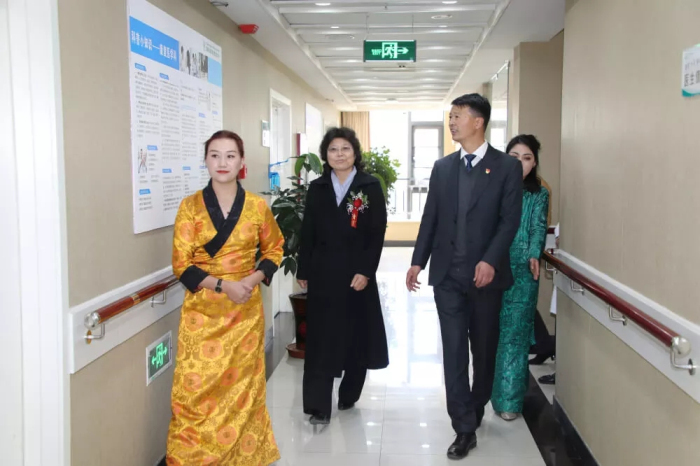 自治區(qū)民政廳黨組成員、副廳長牛玉枝,拉薩市衛(wèi)生和計劃生育委員會黨委副書記、主任扎西德吉,西藏自治區(qū)民政廳社會福利和社會事務(wù)處處長王大軍,西藏阜康醫(yī)療股份有限公司黨委書記、董事長王斌共同為西藏阜康醫(yī)院醫(yī)養(yǎng)結(jié)合中心揭牌。之后牛玉枝、扎西德吉、王大軍、王斌及出席儀式的各位領(lǐng)導(dǎo)參觀了阜康醫(yī)院醫(yī)養(yǎng)結(jié)合中心。