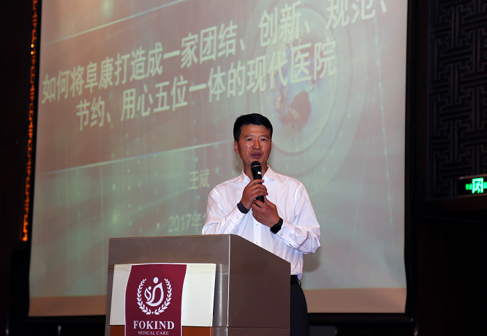 "現(xiàn)在整個中國都已融入世界發(fā)展的快車道,中國價值已被越來越多的國家認可。習近平主席提出的四個全面、五位一體、人類命運共同體也得到越來越多人的擁戴。而我們個別員工還停留在有誰罩著我,跟著誰混保平安的落后思想!現(xiàn)在我們唯有團結一致、勇于創(chuàng)新、規(guī)范管理、厲行節(jié)約及用心服務的思想才能在激烈的醫(yī)藥行業(yè)闖出阜康的一片天地?,F(xiàn)在企業(yè)準備上市,大家必須嚴格按照上市企業(yè)的要求做到自律,規(guī)范服務接受社會大眾的監(jiān)督!因為大家那怕不好的一言一行都會影響阜康的上市工作!從阜康過去發(fā)現(xiàn)的問題來看,這些問題的出現(xiàn),主要是我王斌的問題,我以前只要求大家要做什么沒告訴大家怎么做才符合阜康的核心價值觀,缺少必要的崗前培訓。以后要加強德育和治理能力的培訓,只有這樣才能形成院領導服務科主任,科主任服務科員,行政后勤服務醫(yī)技護臨床一線,一線員工服務患者的思想,主動提高服務意識和水平徹底告別生、硬、冷的服務態(tài)度!讓阜康再次成為西藏醫(yī)藥行業(yè)的標桿?!蓖醣笳f。