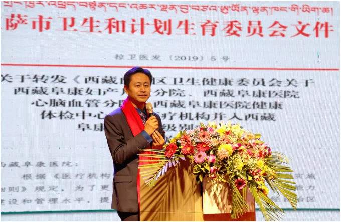 本次大會特邀嘉賓有:西藏自治區(qū)政協(xié)副主席、西藏自治區(qū)工商聯(lián)主席、西藏自治區(qū)總商會會長阿沛·晉源,西藏自治區(qū)工商聯(lián)黨組成員、西藏自治區(qū)工商聯(lián)副主席巴桑多吉,中國農(nóng)業(yè)銀行西藏分行黨委委員副行長、兼拉薩分行黨委書記行長羅布,西藏玉拓醫(yī)療健康養(yǎng)老產(chǎn)業(yè)有限責(zé)任公司專職副總經(jīng)理魯玲華。西藏阜康醫(yī)療高級顧問歐珠羅布主持大會。