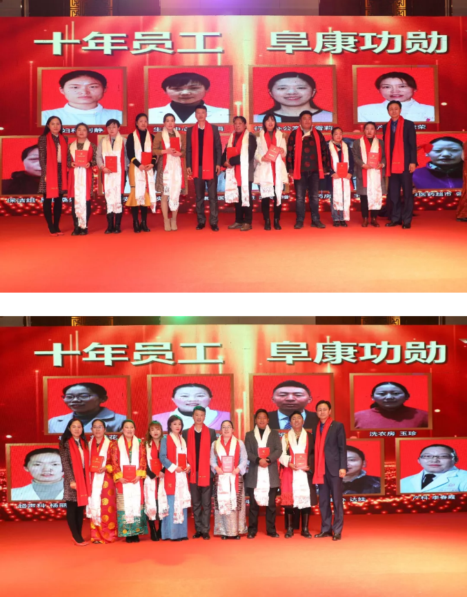 隨后,西藏阜康醫(yī)院業(yè)務(wù)院長劉連福宣讀了《關(guān)于2019年度西藏阜康醫(yī)療股份有限公司榮獲先進(jìn)獎項及名單的表彰決定》,除了對先進(jìn)個人和集體進(jìn)行表彰,本次大會還為"10年員工”進(jìn)行表彰并獎勵一萬元,董事長王斌率院領(lǐng)導(dǎo)為先進(jìn)集體和優(yōu)秀個人頒發(fā)了證書和獎金。
