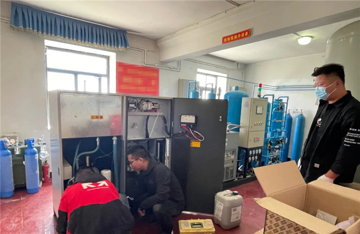 此次慰問(wèn),同行的還有西藏圣海諾科技有限公司總經(jīng)理朱永強(qiáng)及其公司員工一行,為其保養(yǎng)制氧機(jī)設(shè)備。