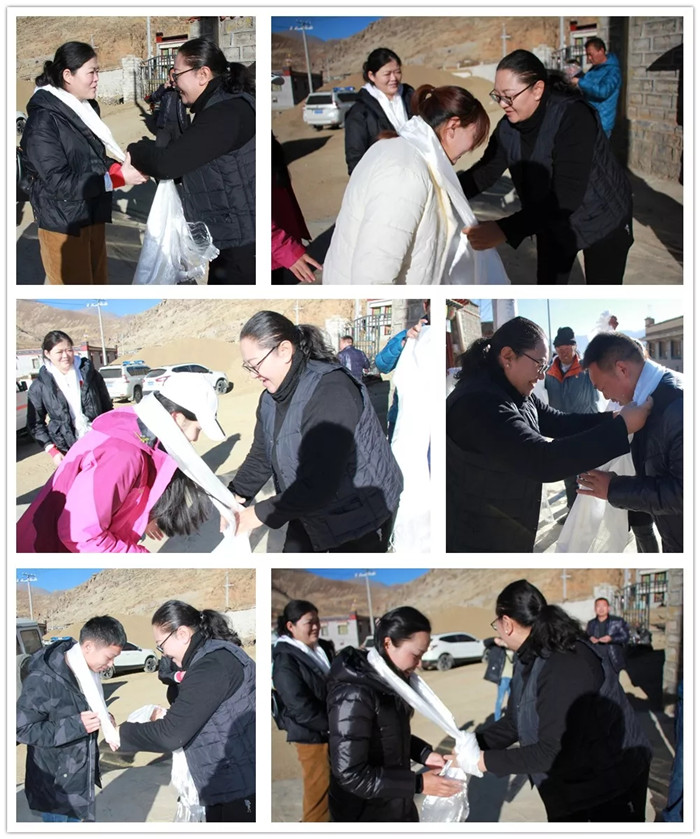嘎布村駐村工作隊隊長為醫(yī)療隊獻上哈達